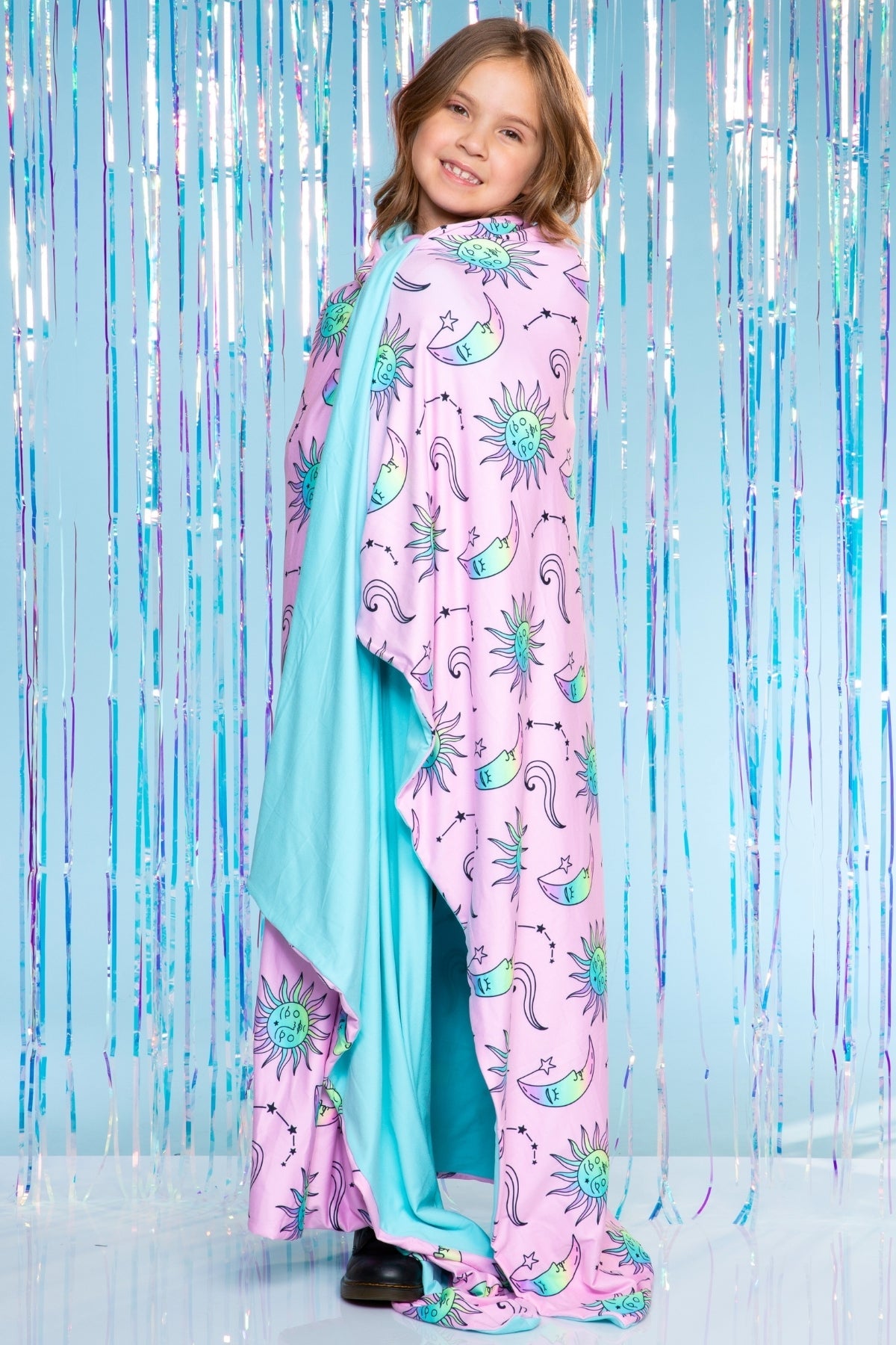 Our super cozy reversible t-shirt blanket is made in our Simply Soft fabric. This is the softest blanket you will ever own and it keeps you warm and cool at the same time! This full sized blanket measures 54 x 71" will be your favorite thing to snuggle with, whether on the couch watching a movie or cuddling in bed. It's also the perfect travel blanket!
