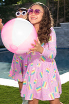 Our Be Happy dress is one of our staple silhouettes! This dress features cross-back detail and a shirred elastic waist and cross back detail. Made in our Simply Soft fabric, it's ultra soft, stretchy and washes extremely well. Trust us, your little will want this in multiple prints!