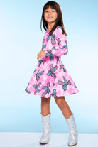 Our Be Happy dress is one of our staple silhouettes! This dress features cross-back detail and a shirred elastic waist and cross back detail. Made in our Simply Soft fabric, it's ultra soft, stretchy and washes extremely well. Trust us, your little will want this in multiple prints!