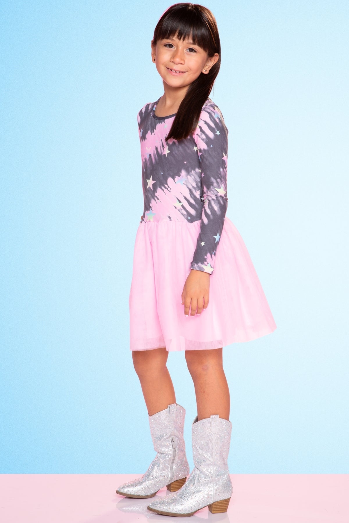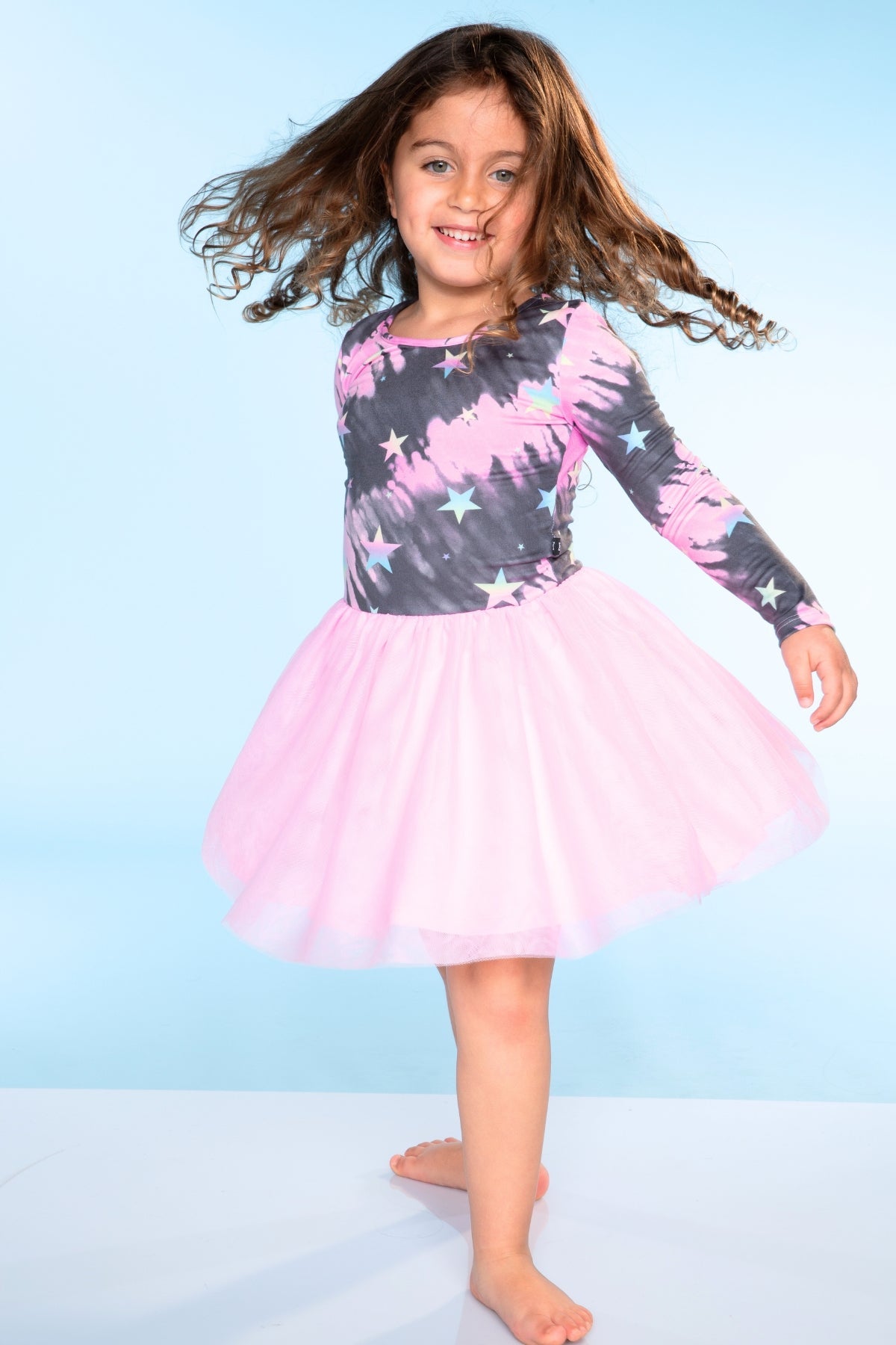 Our Long Sleeve Be Happy Tulle Dress features a shirred elastic waistband with layers of fun & feminine tulle. The bodice is designed in our Simply Soft fabric and the skirt is made of our soft tulle. Our custom prints are one-of-a-kind and kids can't get enough of our fun colors & patterns!