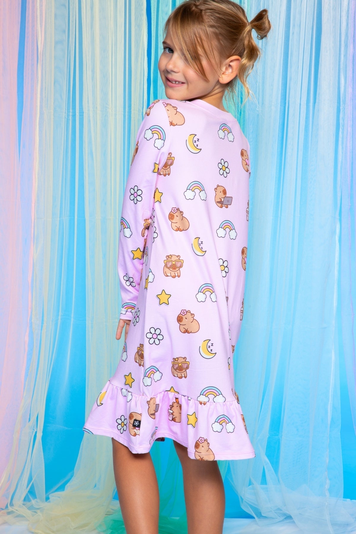 Our lounge is the softest around! Made in our Simply Soft fabric, this ultra cozy, buttery soft Lounge Dress is not only going to be your kid’s favorite, but it withstands countless washes! This relaxed Lounge Dress features a fun feminine ruffle hem. Try this lounge, it won’t be your last!