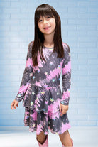 Our Long Sleeve Ruffle Skirt Dress has a feminine fit 'n flare skater skirt. With an elastic-free waistband, it's perfect for any child who is sensitive to seams. Featured in our Simply Soft fabric, it's ultra soft and does not shrink, fade or pill. Our custom prints are one-of-a-kind and kids can't get enough of our fun colors & patterns!