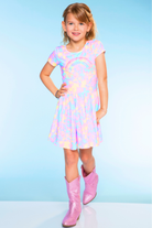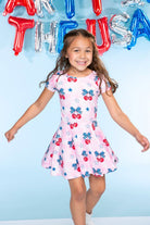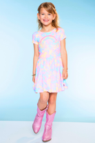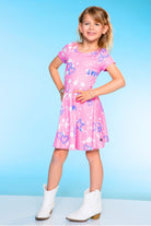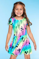 Our Be Happy dress is one of our staple silhouettes! This dress features a shirred elastic waist and a new scoop back detail. Made in our Simply Soft fabric, it's ultra soft, stretchy and does not shrink, fade or pill. Our custom prints are one-of-a-kind, trust us, your little will want this in multiple prints!